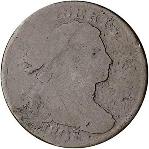 Close to G4 with a very slight bend in the planchet at the L in LIBERTY caused by a dull dent at NI in UNITED on the opposing side. The surfaces are mostly smooth and offer decent eye appeal, but there is some minor roughness in the field left of the date and before the face. No verdigris or other notable defects. MDS. The date is clear and the overdate is strong. The legend is easily readable but some of the letters are wearing into the rim. Still a nice example of this classic rarity, one of the tougher "Redbook" varieties in the Large Cent series.