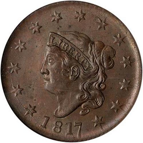 Frosty bluish steel brown. There are a few specks of dark toning in the field under star 6, a speck of carbon at the leaf over the E in ONE, and a reddish spot at the top of the second T in STATES plus another in the leaves under the second A in AMERICA. MDS, the usual Randall Hoard die state for this variety. EAC grade MS60.