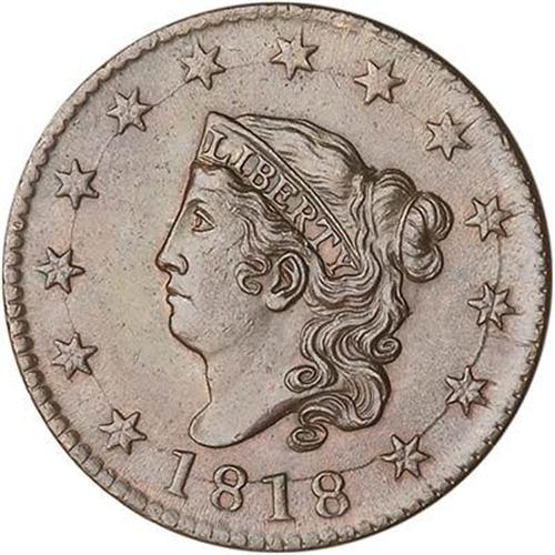 Glossy bluish steel brown and chocolate with traces of very faded mint color in protected areas. No spots or stains, just some microscopic ticks on the cheek. MDS, the usual Randall Hoard die state.
