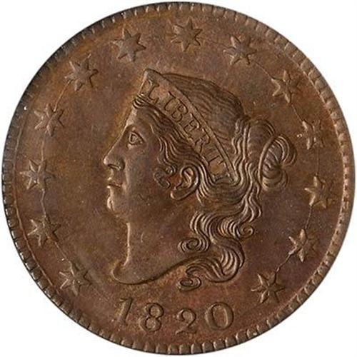 Glossy steel brown with some frosty lighter brown in protected areas. A couple tiny ticks on the cheek are the only marks. MDS, the Randall Hoard die state. EAC grade MS60.