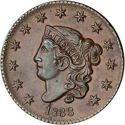 Five points sharper with a tiny spot of light corrosion at the top of the 1 in the date and a couple tiny rim nicks on both sides, the notable one right of star 9, plus a dull pinprick high on the neck. Glossy reddish chocolate brown with frosty light brown toning in protected areas. M-LDS.