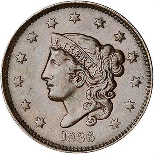 Attractive lustrous bluish steel brown and chocolate with peeps of mint color in some of the protected areas. Great eye appeal and only a few trivial marks, including a tiny tick on the tip of the chin and a speck of carbon in the dentils over the I in UNITED. LDS.