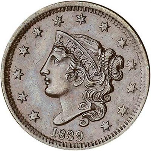 Glossy chocolate brown with steel brown toning on the highpoints and satiny mint frost in protected areas. The only defects are a few faint contact marks in the field before the portrait. E-MDS.