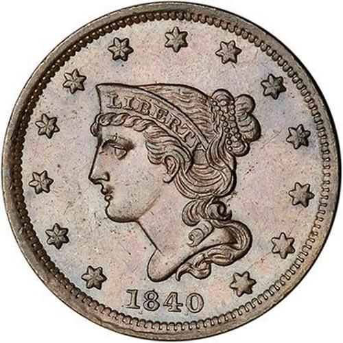 Frosty light golden brown and tan. A small nick on the bridge of the nose and a very tiny rim nick at the U in UNITED are the notable marks, and they are trivial. Sharp E-MDS, die state b early.