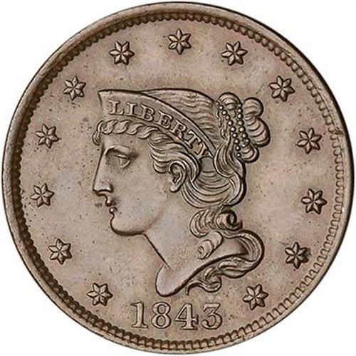 Lustrous light bluish steel brown with traces of mint red remaining on the obverse, 15% of the mint color remaining on the reverse. The obverse fields are satiny while the reverse fields are prooflike thanks to a fresh die polishing. There is a very tiny planchet chip on the rim at star 10, as struck, plus some microscopic specks of carbon under the N in CENT. LDS, die state c, Newcomb's old #7. Excellent eye appeal, very close to MS63. Tied for CC#7.