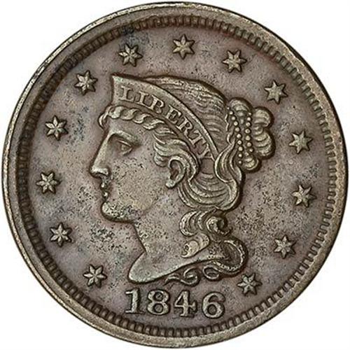 Sharpness EF45 but covered with very fine porosity. No verdigris, and the only contact mark is a small, light rim nick at the E in UNITED. Slightly glossy reddish chocolate brown with some darker olive splashes on both sides. Very rare LDS, die state c, with a strong rim cud break over the ES in STATES. This is the discovery coin for the die state.