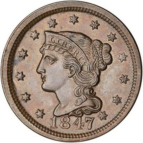 Frosty steel brown and chocolate with hints of faded mint red remaining in a few protected areas. The only marks are a small planchet flake in the field over star 1 and a tiny splash of darker steel brown toning at the dentils under star 3. E-MDS.