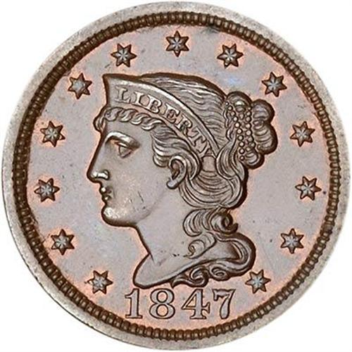 Glossy light to medium steel brown with 5% of the mint red remaining. The only defects are a small spot of very fine carbon at the dentils over star 8 and a tiny rim nick at the R in AMERICA. E-MDS, die state b. The dies are unclashed and the fine lines at the inner curl are still clear.