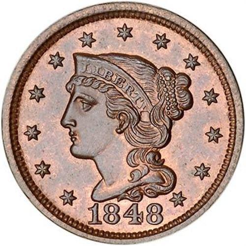 Mint red fading to steel brown, about half the red remaining, mostly on the reverse. Nearly flawless. The only defects, and they are barely visible with a glass, are a speck of dark toning in the field under the right side of star 5 and two more well-hidden in the dentils over the first S in STATES. M-LDS, die state b. The obverse fields are slightly reflective thanks to a fresh die lapping. An attractive cent, tied for finest known honors.
