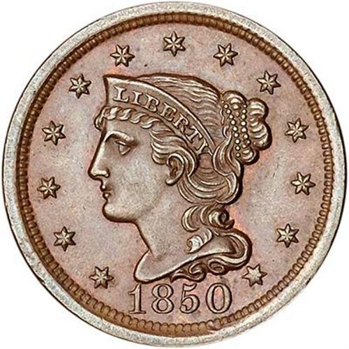 Frosty bluish steel brown with traces of faded mint red on both sides. There is a light diagonal nick on the chin, a light nick in the dentils under the 0 in the date, and a speck of carbon on the right top of the second T in STATES. MDS, die state b, with a die crack through the top of the reverse legend. CC#4. Removed from an NGC slab graded MS64BN (NGC label included).