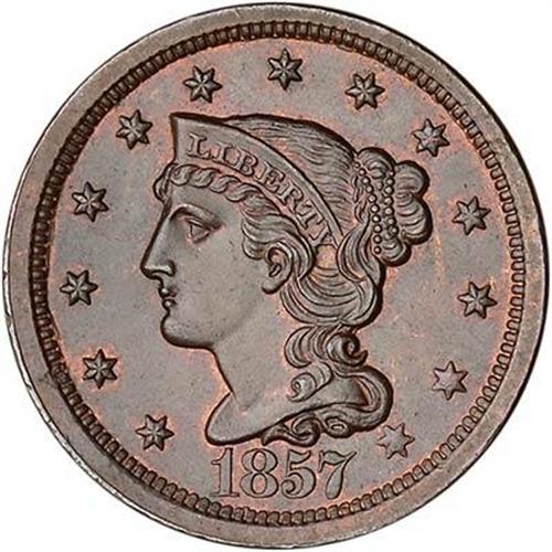 Close to MS63 but there is a faint scuff of microscopic hairlines in the field behind the portrait. Otherwise this cent is choice. Lustrous bluish steel and chocolate brown with 10% of the mint color remaining. A shallow planchet flake on the rim at star 2 is the best identifying mark. Sharply struck EDS. Removed from an NGC slab graded MS64BN (NGC label included).