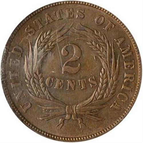 <B>Two Cents. 1865 PCGS graded Mint State 62 Brown.</B> Variegated pinkish copper to dark brown