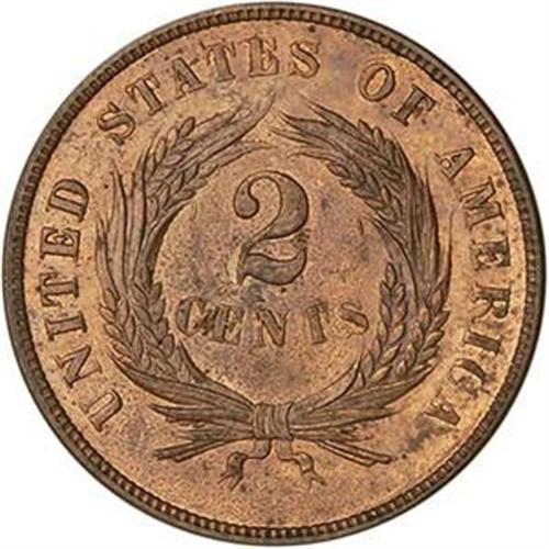 <B>Two Cents. 1873 Closed 3. Brilliant Proof 64. Red and Brown.</B> A few old-time flyspecks on