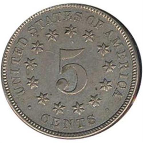 <B>Shield Nickel. 1879 About Uncirculated 50.</B> Nicely toned. You can thank one consignor for