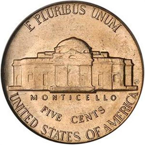 <B>Jefferson Nickel. 1949-D D Over S. PCGS graded Mint State 66.</B> A satiny matte-like gem wi