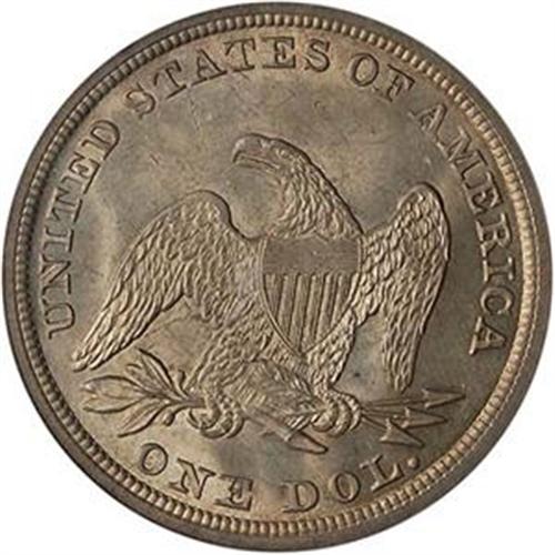 <B>Liberty Seated Dollar. 1853 PCGS graded Mint State 63.</B> Die clash gives Liberty a goatee