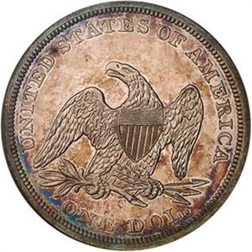 <B>Liberty Seated Dollar. 1860 PCGS graded Proof 62.</B> The fields on this well struck example