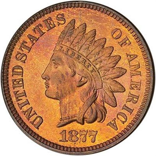 Always popular as a proof example of the key date in the Indian Cent series. No precise mintage figure exists for the proof 1877 Indian, but enough information is available to make an educated guess. Breen lists 510 in his Proof Encyclopedia. The present estimate is now 910. It is known that 510 "Silver" sets were sold which included the five silver coins, the two nickel coins and the cent. Additionally, there were about 400 "Nickel" sets struck which included just the cent and the two nickel coins, of which perhaps only 260 were mailed out, with the unknown remainder being sold over the counter in Philadelphia.