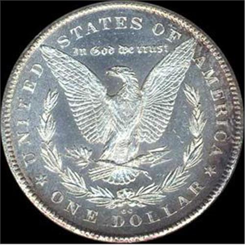 <B>Morgan Dollar. 1878-CC Mint State 63. Prooflike.</B> Attractive purple-brown toning at the e