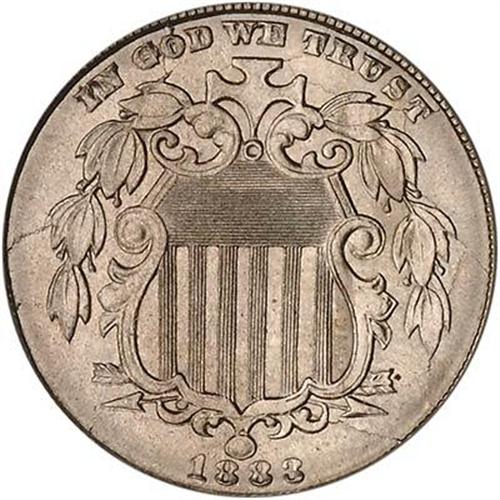A spectacular gem of this last year Shield nickel strike with superlative cartwheel luster that radiates boldly beneath bright highlights. Possesses a much finer strike than is typically found for a Shield nickel.