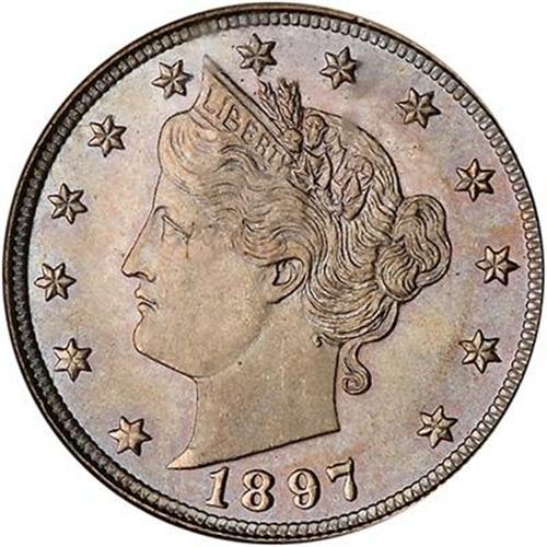 A satiny gem with nicely imbued luster that overwhelms the frosty devices. Nicely struck for the 1897 issue, indeed, about as fine as this year is ever found. Only the bottom two stars on the left are rounded, along with the left ear of corn in the wreath.