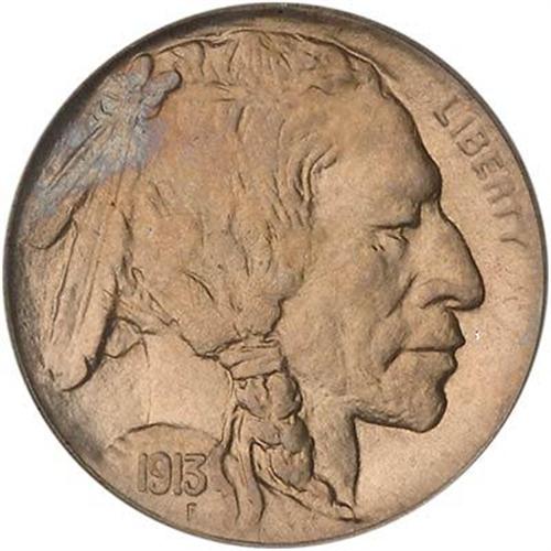 This fortunate survivor exhibits dominant golden-hued iridescence that yields to warmer champagne tinting over the reverse. A fine-grain satin texture is readily evident, and there are no grade-limiting contact marks on either side. Sharply, if not fully struck, with just a few trivial weak areas toward the hair braid and on the buffalo's shoulder that we mention solely for the sake of accuracy. Beautiful, original, and hard to find, this 1913-D Type 2 has all that it takes to be a highlight of a major numismatic collection.