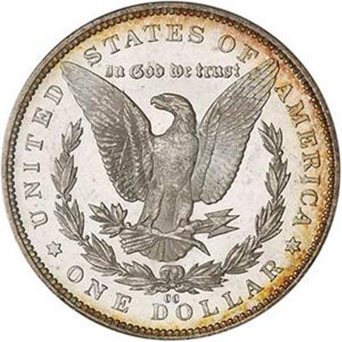 <B>Morgan Dollar. 1892-CC PCGS graded Mint State 63. Prooflike.</B> Light golden brown at the r