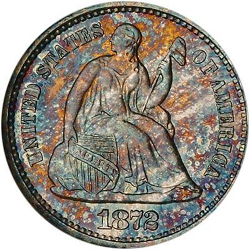 A satiny sky-blue toned gem with strong underlying luster. Nicely struck, though not fully so; 1872-S never has the depth of detail in the figure of Liberty or rim dentils as seen on the associated Philadelphia Mint pieces. However, this specimen is close enough to full that it deserves notice.