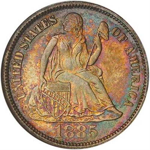 A sleek and satiny deep golden gray specimen, it radiates intense luster and a nuance of other colorful hues in the toning on both sides. Being somewhat finer than typically seen for the otherwise readily available date, it boasts very sharp design details at the main devices on both sides.