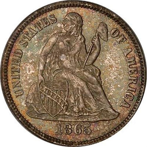 One of the low-mintage dates from the middle 1860s, only 500 Proofs were sold by the mint this year, and this is a desirable gem. Faithful to every detail from a full blow by the dies, it has sharp features on Liberty and her shield, along with similar nice detail in the "wreath of cereals" as it came to be known to collectors. Well toned on both sides.