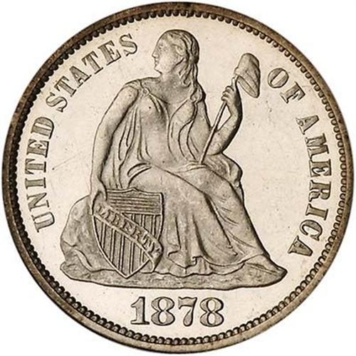 Highly lustrous and fundamentally brilliant as the day it was made with white frosted highlights on both sides. Ever so fully struck, with just the finest detail in Liberty's hair, her drapery folds, and also the shield; the details are impressive to say the least. Proof mintage was only 800 pieces in 1878.