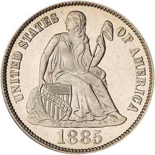 In the year 1885, the year of this seated Liberty Proof dime, Charles S. Tainter [born Watertown, Massachusetts, April 25, 1854, died April 20, 1940] developed the Dictaphone, a machine for recording dictation, and the bane of generations of secretaries ever after!