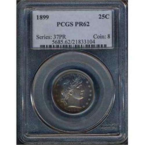 A high degree of reflective luster still dances its pirouette on the toned surfaces of this well struck Proof quarter. The devices are crisp in most places as expected on a Proof. And only 846 Proofs were issued in 1899.