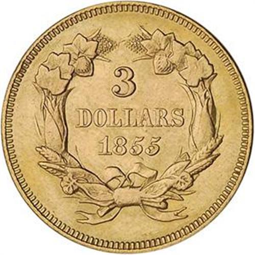 <B>$3 Gold. 1855 Net grade Extremely Fine 40.</B> Burnished. <BR>Estimated Value $700-1