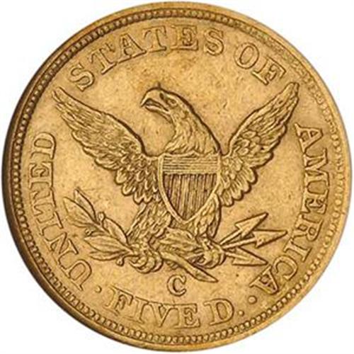 <B>$5 Gold Liberty. 1856-C NGC graded Mint State 60.</B> A golden, lightly toned example, a