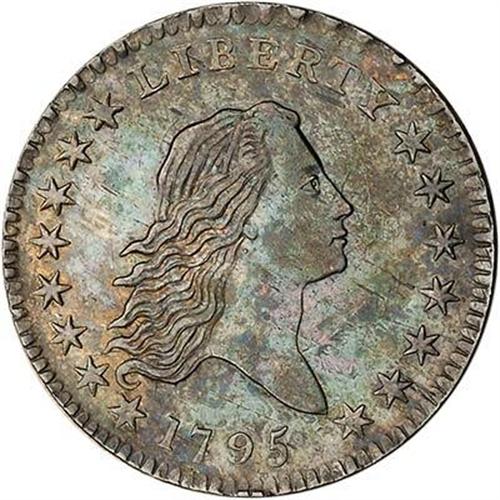 Pleasing dark steel gray with lighter gray at the stars and around some of the legends on the reverse. Well struck for this issue, the die is noted for having stars 1 and 2 distant from the curl; also, star 5 and the figure 9 are noticeably recut. Minor die clash marks; a few faint old hairlines and planchet streaks (the latter, as made). A choice early Flowing Hair half dollar that sits high in the Condition Census.