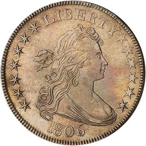 Clearly, this is not artificially toned since it comes to us for auction from an old-time collection and has pleasing medium gray patina interspersed with frosty luster. Needle fine details. Looks like a specimen or proof striking. One of the desirable Draped Bust Heraldic Eagle pieces.