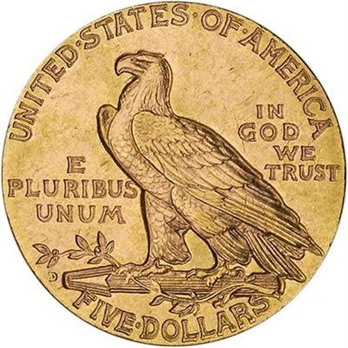 <B>$5 Gold Indian. 1909-D Mint State 60.</B> Extra crisp detail on all relief portions. <BR
