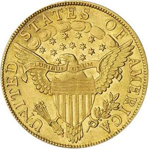 <B>$10 Gold Capped Bust. 1799 Small Stars. Detail of Mint State 61, Net grade About Uncircu
