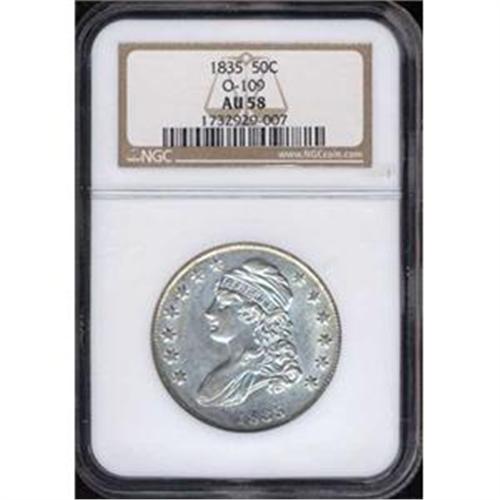 ALL ITEMS OFFERED IN THIS CATALOGUE ARE GUARANTEED TO BE AUTHENTIC. THIS IS A LIMITED WARRANTY THAT THE ITEM SOLD IS NOT COUNTERFEIT, THAT ITS DATE OR MINTMARK HAS NOT BEEN ALTERED, AND THE ITEM HAS NOT BEEN "REPAIRED." ANY OTHER WARRANTY IS EXPRESSLY DISCLAIMED; THERE IS NO REPRESENTATION OR WARRANTY THAT A NUMISMATIC ITEM HAS OR HAS NOT BEEN CLEANED; THAT ANY TONING IS NATURAL OR ARTIFICIAL; THAT ANY ITEM WILL MEET THE STANDARDS OR GRADE OF ANY INDEPENDENT GRADING SERVICE; THAT ANY ITEM HAS A PARTICULAR PROVENANCE OR PEDIGREE, OR THAT AN ITEM IS STRUCK OR PRODUCED IN A PARTICULAR STYLE. ANY STATEMENT CONCERNING THIS IS A MATTER OF OPINION ONLY. NO WARRANTY, WHETHER EXPRESSED OR IMPLIED, INCLUDING A WARRANTY OF MERCHANTABILITY IS MADE WITH RESPECT TO ANY GRADE DESCRIPTION OR VALUE, WHICH IS ONLY AN OPINION THAT IS LIKELY TO DIFFER, EVEN AMONG EXPERTS. PURCHASER HEREBY ASSUMES ALL RISKS CONCERNING AND RELATED TO THE GRADING OF A LOT.