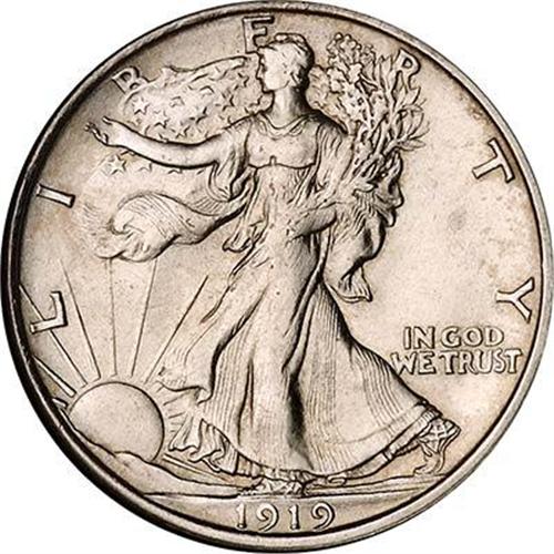 Bright silver color with a hint MS64 elevation in the clean surfaces of this better-than-average struck and nicely preserved example. In choice condition, the 1919-D and 1921-S are the two foremost keys in the avidly collected Walking Liberty Half series, and a strong case could be made for placing this issue at the top of the list. Aside from the fact that the supply of 1919-D Walkers at the Mint State level is extremely limited, the single greatest deterrent in locating a Choice MS63 example is the tell-tale weakness of strike, especially on the hand and head area of the obverse, that seems common to virtually all 1919-D Half Dollars.