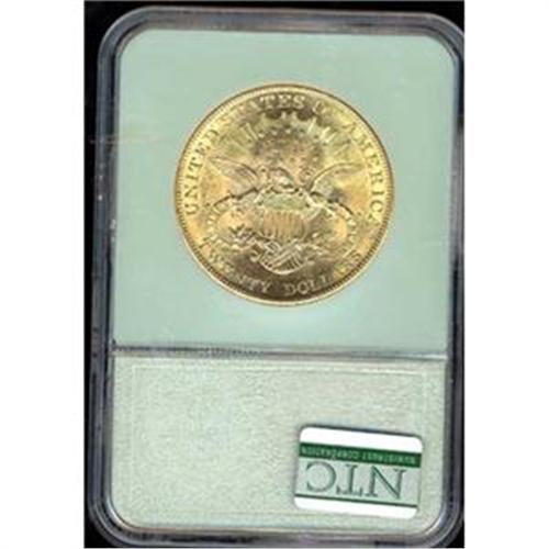 <B>$20 Gold Liberty. 1904 Mint State 63.</B> Scattered light abrasions on the face and in t