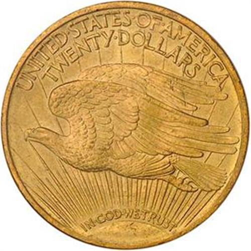 <B>$20 Gold St. Gaudens. 1908 With Motto. NGC graded Mint State 64.</B> The color is a rich