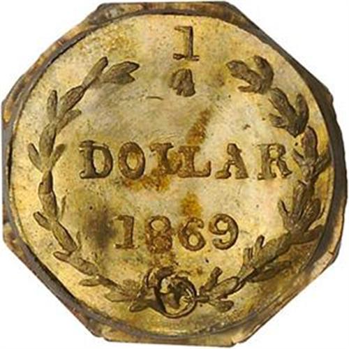 <B>1869 Liberty Head Octagonal Quarter Dollar. BG-712. PCGS graded Mint State 65.</B> Another o