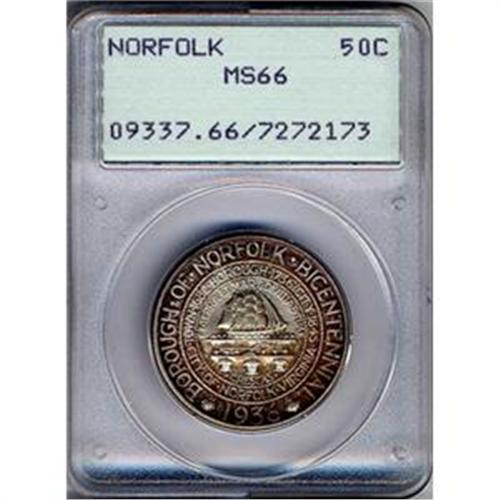 Gorgeous deep original toning with sleek perfection in the fields and devices. A marvelous representation of this design which commemorates the bicentennial of the Borough of Norfolk, Virginia.