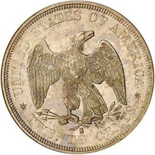 <B>Twenty Cent Piece. 1875-S PCGS graded Mint State 65.</B> Dazzling bright surfaces and uncomm