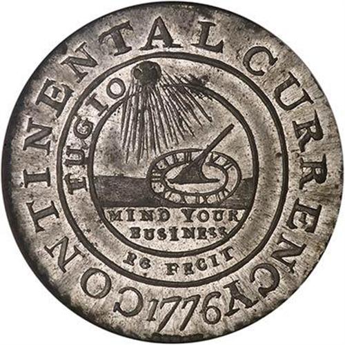 This lovely Mint State specimen is an excellent example of America's famous and historic Revolutionary War emergency coinage, one every collector of early American coins wishes to own and a type that belongs in collections of colonial coins or early dollars. Low-grade pieces, despite the number of people who would like to find a coin in middle circulated grades, are rather elusive -- most Continental Dollars, it seems, never circulated enough to become worn, evidence that this currency never found wide circulation channels. The result, for a modern collector, is that Mint State pieces are the best way to rope in a Continental dollar for your collection, as they appear with greater frequency and represent a better value than a rarer worn. The price of Continental dollars continues to escalate, of course, with increased collector interest and ever-expanding inflationary prices, and we have yet to see an extensive time in the market that they have not been avidly sought (nor do we expect to).