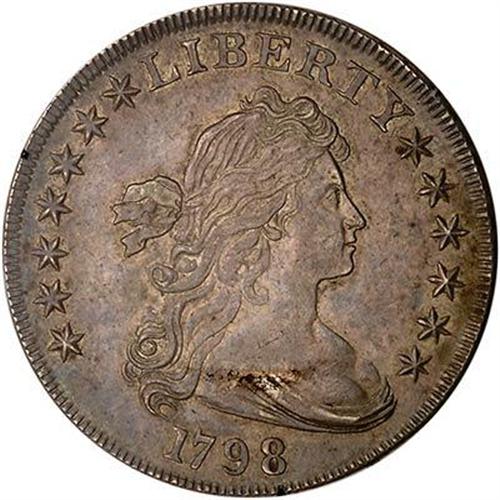 This attractive early silver dollar displays some mint frost around the stars and letters and has choice "old silver" patina with no signs of cleaning, adjustment marks, or field marks. The rims, too, are outstanding.