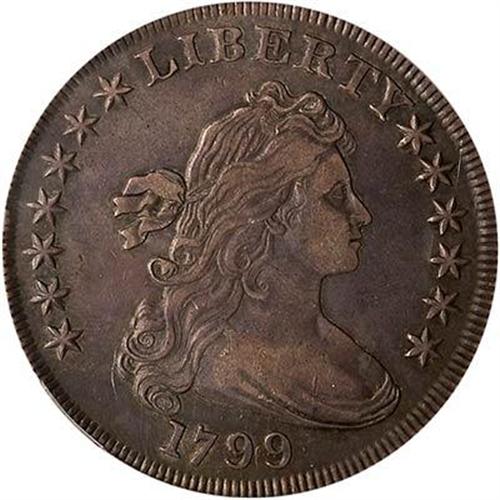 Medium slate-gray surfaces on both sides with underlying choiceness only occasionally found on an early bust dollar. Clear hair definition in Liberty, unworn by extensive use, points to the upper end of the Very Fine grade category, as does the coin's balanced appearance. (The rough area around STATES is from rust on the die.)