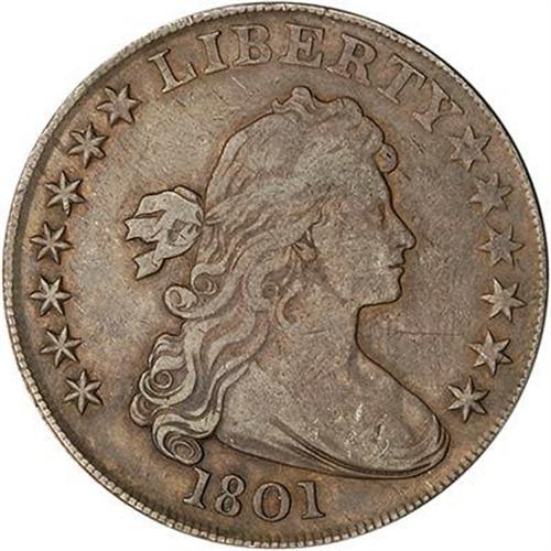 A scarcer late-date Bust dollar. An old, minor pin scratch near the 12th star, decent detail and dullish light to medium gray color. Coin World Trends has this at $4300 in Extremely Fine condition.
